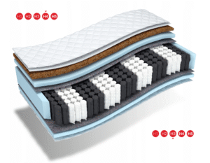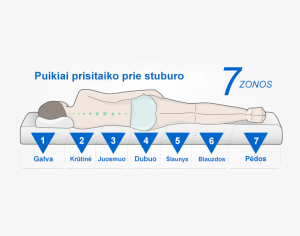 Profiliuotas R44 putų pluoštas – profiliuotas paviršius padalija čiužinį į 7 zonas, užtikrindamas tinkamą čiužinio prisitaikymą prie kūno formos. Putos pasižymi lankstumu, kuris žymiai padidina naudojimo patogumą ir prailgina jų tarnavimo laiką. Ši medžiaga išsiskiria nepaprastu patvarumu ir atsparumu deformacijoms. Papildomas putų privalumas yra porėta struktūra, užtikrinanti nepriekaištingą oro cirkuliaciją, kuri neleidžia vystytis grybeliui ir pelėsiui.