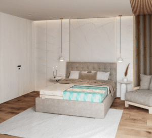 - Padėkite čiužinį ant lovos rėmo.