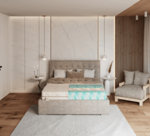 - Padėkite čiužinį ant lovos rėmo.
