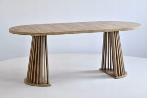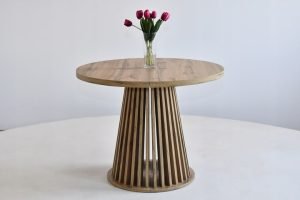 Matmenys : Stalviršio skersmuo: 100 cm – stalviršio storis: 3,6 cm – aukštis: 77 cm –  išskleisto stalviršio ilgis: 150 cm / 200 cm – pagrindo skersmuo: 62 cm .