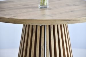 Stalviršis ir pagrindas yra pagaminti iš  abiejų pusių laminuotos plokštės , kuri yra idealus sprendimas kasdieniam naudojimui, dėl aukšto atsparumo  mechaniniams pažeidimams, aukštai temperatūrai ir nešvarumams. Modernios ir išskirtinės stalo kojos prikaustys kiekvieno svečio dėmesį. Stale yra  2 prailginimo įdėklai  (2 x 50 cm), kurių pagalba mažas kavos stalas gali tapti dideliu šeimos pietų stalu.